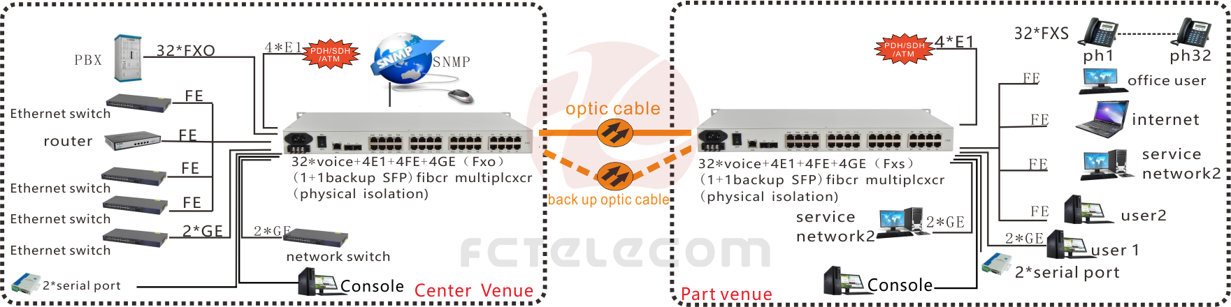 Voice Over Fiber/E1 Voice Over E1 Series Voice Over Fiber Series Multi-service Voice RACK Mount Voice Modular multi-service optic multiplexer More>>